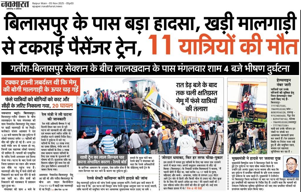 रायपुर | भारत में रेल दुर्घटना होने का रिसर्चर तीव कुमार सोनी का रिसर्च सही सिद्ध हुआ है | छत्तीसगढ़…