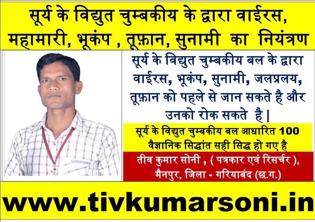 रिसर्चर तीव कुमार सोनी के वैज्ञानिक सिद्धांत को मान्यता प्रदान करने भारत सरकार और छत्तीसगढ़ शासन ने किया पंजीकृत |…