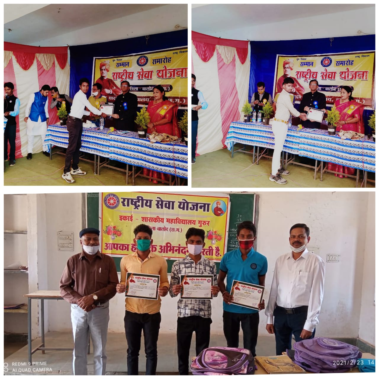 स्वयं सेवकों का जिला स्तर पर सम्मान बालोद–शासकीय महाविद्यालय गुरुर के राष्ट्रीय सेवा योजना इकाई के स्वयं सेवकों को जिला…