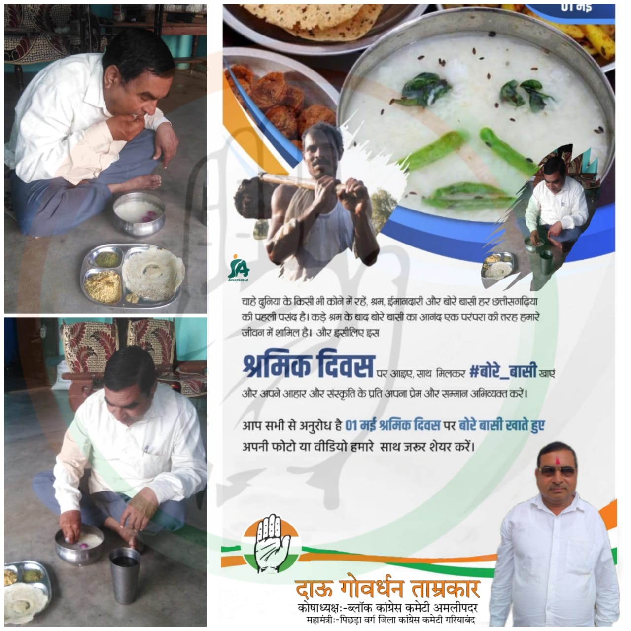 संवाददाता कृष्ण कुमार त्रिपाठी अमलीपदर जिला उपब्यूरो गरियाबंद सर्वोच्च छत्तीसगढ़ ताम्रकार जी ने बोरे-बांसी खा कर प्रदेश के सभी मजदूर…