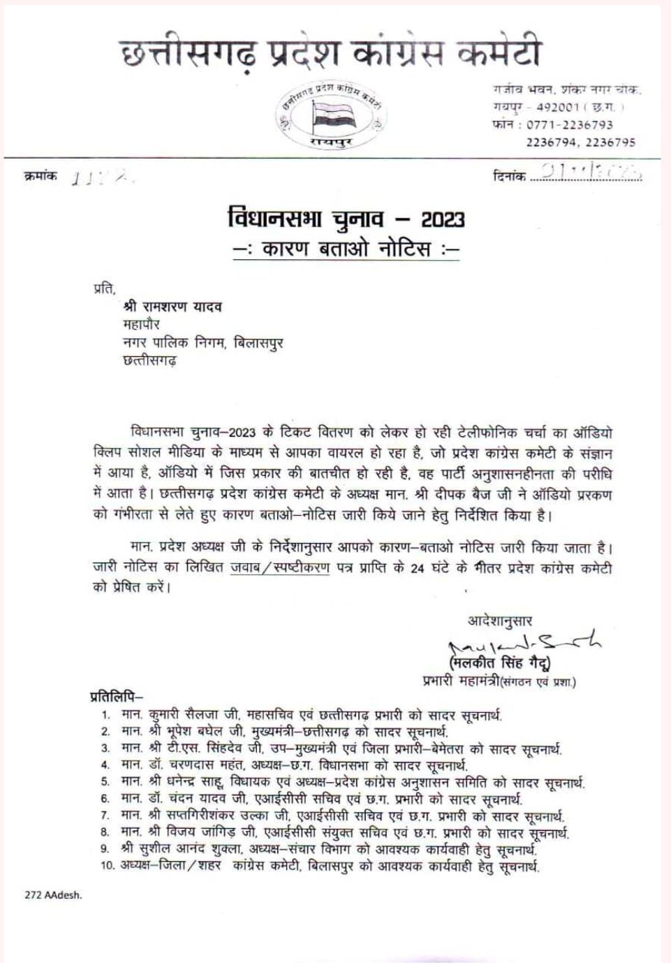 #24 घंटे के अंदर मांगा गया जवाब## रायपुर। प्रदेश कांग्रेस कमेटी द्वारा बिलासपुर के महापौर रामशरण यादव को कारण बताओ…