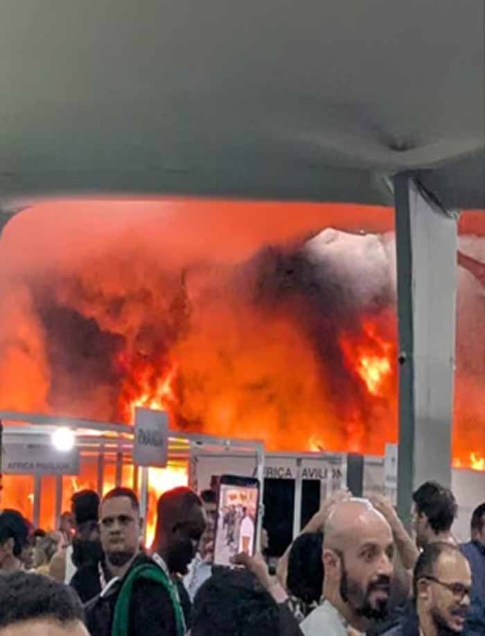 बेलेम ब्राजील के बेलेम शहर में चल रहे 30वें यूएन क्लाइमेट चेंज कॉन्फ्रेंस (सीओपी30) के एक पवेलियन में आग लग…