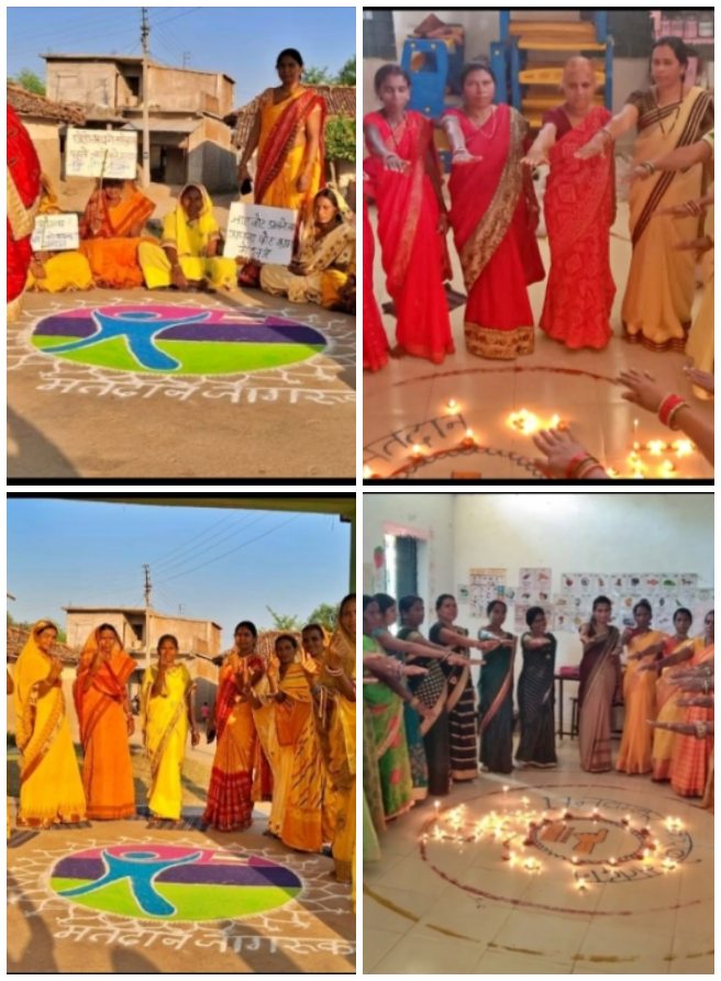 बालोद, 29 अक्टूबर 2023 कलेक्टर एवं जिला निर्वाचन श्री कुलदीप शर्मा के निर्देशानुसार बालोद जिले में आगामी विधानसभा आम निर्वाचन 2023 के दौरान जिले में शत प्रतिशत मतदान सुनिश्चित करने हेतु मतदाता जागरूकता अभियान के अंतर्गत निरंतर विभिन्न प्रकार की गतिविधियां आयोजित की जा रही है। इसके अंतर्गत आज जिले के डौण्डी विकासखण्ड अंतर्गत आंगनबाड़ी कार्यकर्ताओं के द्वारा आकर्षक रंगोली बनाकर व दीप प्रज्जवलन के माध्यम से मतदाताओं एवं आम नागरिकों को लोकतंत्र के महत्व की जानकारी देते हुए सभी प्रकार के निर्वाचनों में अनिवार्य रूप से अपने मताधिकार का प्रयोग करने की अपील की गई। उन्होंने आगामी विधानसभा निर्वाचन 2023 के अंतर्गत बालोद जिले में शत प्रतिशत मतदान सुनिश्चित करने हेतु अनिवार्य रूप से अपने मताधिकार का प्रयोग करने तथा सभी को मताधिकार के प्रयोग के लिए पे्ररित करने को कहा। इस दौरान उन्होंने लोगों को देश की लोकतांत्रिक प्रक्रिया पर पूर्ण आस्था रखते हुए सभी प्रकार के निर्वाचनों में अनिवार्य रूप से अपने मताधिकार का प्रयोग करने की शपथ भी दिलाई।