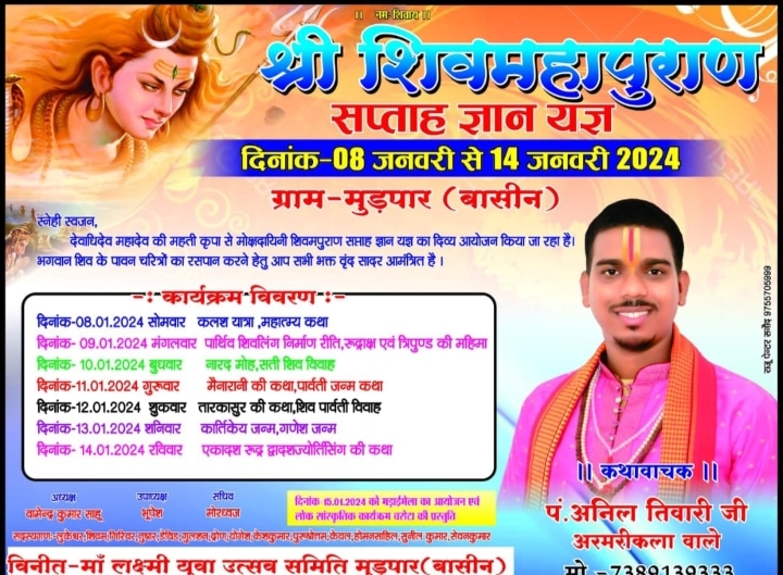 *8से 14 जनवरी तक ग्राम मुडपार में होगा शिव महापुराण कथा,,*