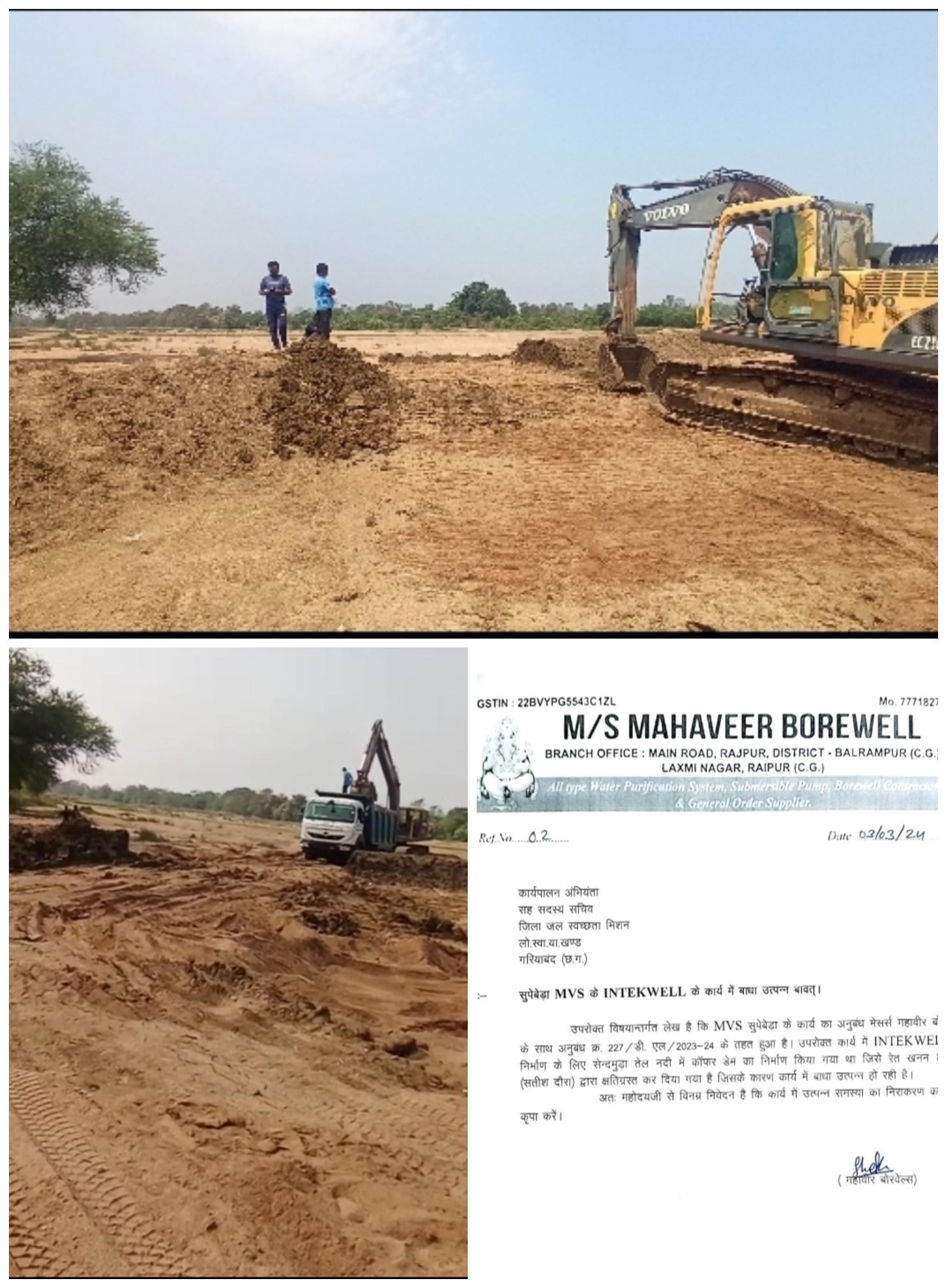 *गरियाबंद:-**सुपेबेडा जल प्रदाय योजना के लिए निर्माणाधीन इंटेक वेल के काफर डेम को ध्वस्त कर रेत के अवैध परिवहन के लिए नदी में रास्ता बनाया,फिर चेन माउंटेन से हाईवा कर रहा लोड। काम को रोका तो रॉयल्टी रोकने की धमकी दे डाली।भयभीत निर्माण ठेकेदार ने पीएचई को घटना की जानकारी दे कार्यवाही की मांग किया।