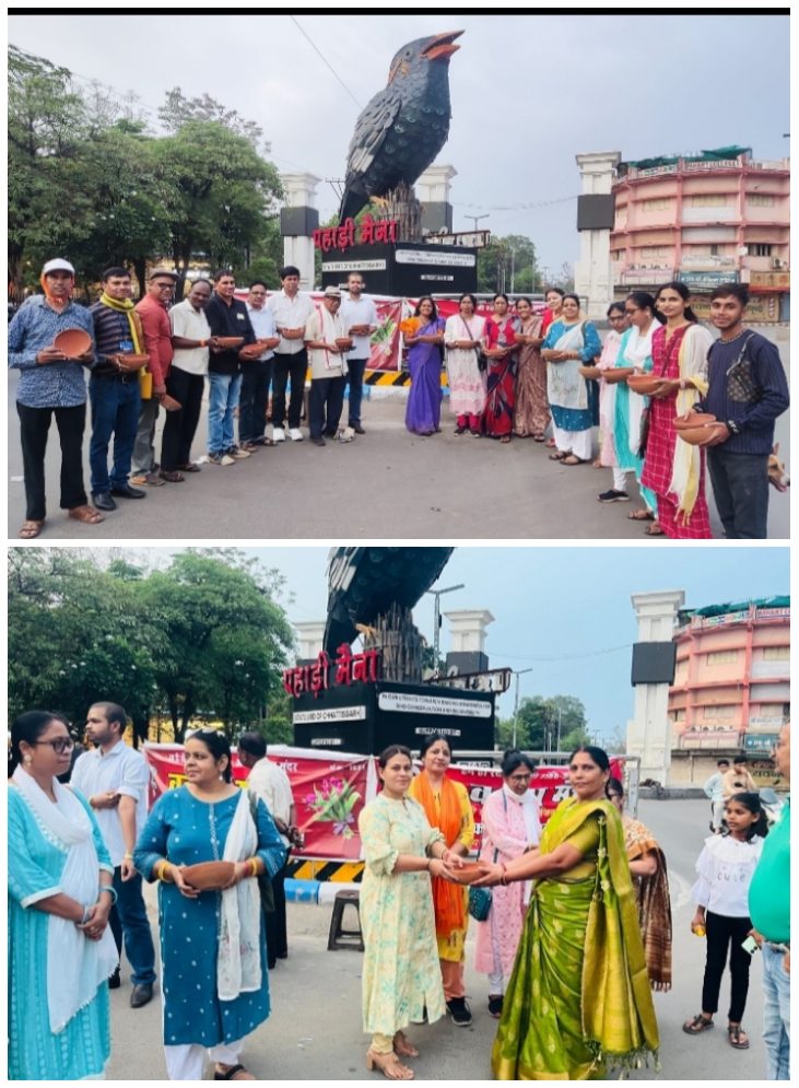 रायपुर:-सामाजिक सरोकार के तहत राजधानी में सामाजिक संस्था वक्ता मंच द्वारा पक्षियों की भूख-प्यास मिटाने के लिए अभियान चलाया जा रहा है। मंच से जुड़े सदस्य इन पक्षियों के लिए दाना पानी रखने हेतु निशुल्क सकोरे बाँट रहे हैं। इस अभियान में ग्रामीण, शहरी, व्यापारी, कामकाजी, विद्यार्थी, महिलाएं आदि वर्ग सहभागी है। जागरूक पर्यावरण प्रेमियों द्वारा वक्ता मंच के बैनर तले संचालित इस अभियान का यह छठवां वर्ष है। वक्ता मंच के अध्यक्ष राजेश पराते ने जानकारी दी है कि इस वर्ष रविवार की शाम निगम मुख्यालय व्हाईट हाउस के सामने स्थित निगम गार्डन से इस अभियान का आरंभ किया गया आज लगभग 300 सकोरे आम जनता के मध्य निशुल्क वितरित कर उनसे अनुरोध किया गया कि अपने घर की छतों, बालकनी या आंगन में पक्षियों के लिए दाना पानी की व्यवस्था करे, खुले आसमान व धूप में विचरण करनेवाले पक्षियों को राहत पहुंचाने वाले इस अभियान की आम जनता ने सराहना की। सकोरा ले रहे लोगों ने कहा कि इन दिनों छत्तीसगढ़ में भीषण गर्मी पड़ रही है और ऐसे वक्त पक्षियों को संरक्षण प्रदान किया जाना जरूरी है।