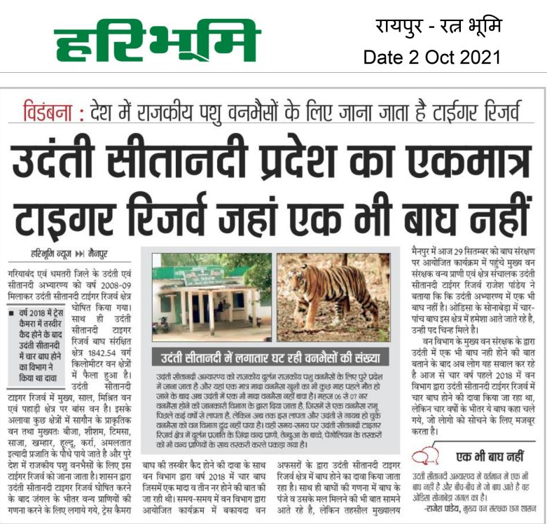 वन विभाग ने अक्टूबर 2022 में उदंती सीतानदी टाइगर रिजर्व में ट्रैप कैमरे में बाघों का फोटो आने का दावा किया था और प्रेस विज्ञप्ति जारी कर सभी समाचार पत्रों में समाचार प्रकाशित करवाया साथ ही राष्ट्रीय बाघ संरक्षण प्राधिकरण (एनटीसीए) को भी बाघों की रिपोर्ट प्रस्तुत किया गया था |जिसके बाद रिसर्चर तीव कुमार सोनी ने भारत सरकार , वन मंत्रालय और राष्ट्रीय बाघ संरक्षण प्राधिकरण (एनटीसीए) को शिकायत कर बताया था की उदंती सीतानदी टाइगर रिजर्व के बाघ के सबूत फर्जी है वन विभाग के द्वारा बाघ का फर्जी फोटो , फर्जी मल , फर्जी पंजा बनाया गया है | शिकायत पर आतंरिक परिक्षण किया गया और उदंती सीतानदी टाइगर रिजर्व के बाघ के सबूत को सही नहीं माना गया है और बाघ के रिपोर्ट को रोक दिया गया है |