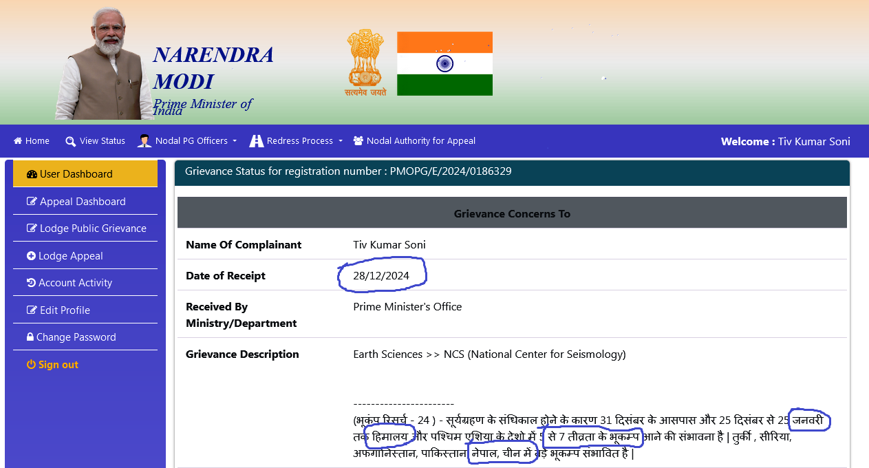 रिसर्चर तीव कुमार सोनी के भूकंप, वाईरस, तूफ़ान ,जलप्रलय के 100 रिसर्च सही सिद्ध हो गए है