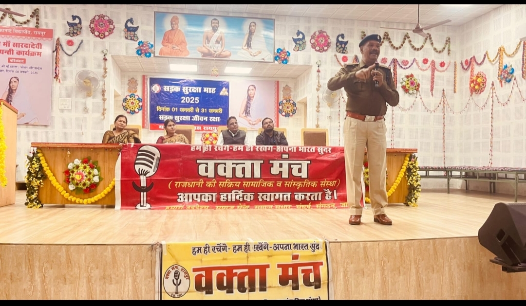 रायपुर l सड़क सुरक्षा माह के अंतर्गत सामाजिक संस्था ” वक्ता मंच ” के तत्वाधान में राजधानी की शिक्षण संस्थानों में जारी यातायात प्रशिक्षण कार्यक्रम के तीसरे क्रम में आज विवेकानंद विद्यापीठ कोटा मे प्रशिक्षण संपन्न हुआ l यातायात प्रशिक्षक श्री टी के भोई ने अपनी रोचक व प्रभावी शैली में इतने कठिन विषय को छात्रों व शिक्षकों के मध्य सरलता से पेश किया l उन्होंने कहा कि युवा देश का वर्तमान है और छात्र देश का भविष्य है l हमारे देश में सड़क दुर्घटनाओं मे सबसे ज्यादा छात्र व युवाओं की मृत्य हो रही है l इसका मतलब है कि देश का वर्तमान और भविष्य दोनों ही सड़क हादसों में मारे जा रहे है l यातायात नियमों का पालन हमें सड़क दुर्घटनाओं से प्रभावी सुरक्षा प्रदान करने में सहायता प्रदान करते है l उन्होंने कहा कि निर्धारित गति पर वाहन चालन, सीट बेल्ट व हेलमेट का उपयोग,इ यातायात संकेतकों व ट्रैफ़िक नियमों के पालन से सड़क दुर्घटनाओं में कमी लाई जा सकती है l अपनी रोचक शैली में उन्होंने यातायात जैसे जटिल विषय को बड़े सरल तरीके से विद्यार्थियों के समक्ष प्रस्तुत किया l इसअवसर पर वक्ता मंच के अध्यक्ष राजेश पराते ने कहा कि सड़क पर सबका अधिकार है l दूसरों के अधिकार का सम्मान करते हुए हमें सड़क पर अपनी गति एवं चालकीय गतिविधियों को क्रियांवित करना चाहिए, क्योंकि सड़क केवल मेरे लिये नहीं बनाई गई है l उन्होंने सड़क पर स्टंट बाईक जैसे खतरनाक कार्यो को न करने की अपील की तथा शिक्षकों व पालकों से अनुरोध किया कि बच्चों की वाहन चालन संबंधी गतिविधियों की निगरानी करे l कार्यक्रम में वक्ता मंच के संयोजक शुभम साहू एवं विद्यालय की प्रचार्या मनीषा चक्रवर्ती ने भी अपने संबोधन में छात्रों से यातायात के नियमों के पालन का अनुरोध किया l उल्लेखनीय है कि यातायात पुलिस द्वारा 1 जनवरी से 31 जनवरी तक मनाये जा रहे सड़क सुरक्षा माह के अंतर्गत वक्ता मंच द्वारा शहर के स्कूलों व कालेजों में सुरक्षित सड़क यातायात पर प्रशिक्षण कार्यक्रमों की श्रृंखला आरंभ की गई है l इसके अंतर्गत 7 जनवरी को शहीद राजीव पांडे शासकीय महाविद्यालय भाटागाँव एवं 8 जनवरी को बिंदा सोनकर विद्यालय अश्वनी नगर में भी उक्त प्रशिक्षण कार्यक्रम संपन्न हो चुके है l वक्ता मंच के संयोजक शुभम साहू ने घोषणा की है कि पूरे माह विभिन्न शैक्षणिक संस्थानों में यह कार्य जारी रखा जायेगा l