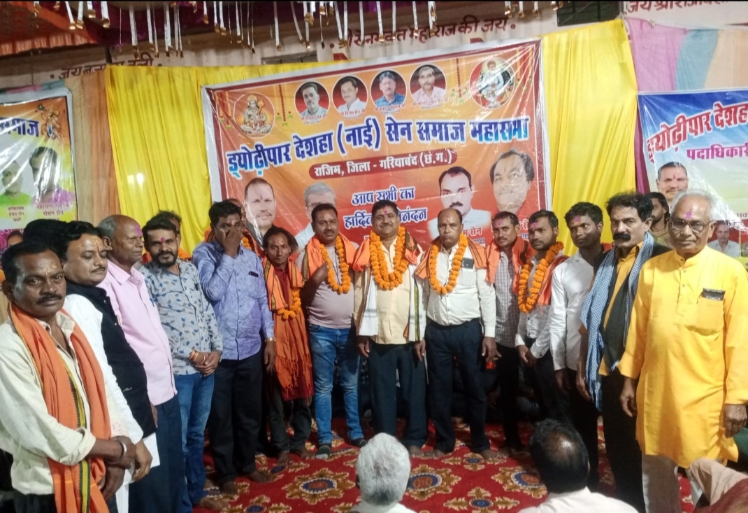 राजिम -ड्योढ़ी पार देशहा सेन समाज राजिम महासभा का आयोजन विगत दिनों सम्पन्न हुआ,जिसमें राजिम महासभा के अंतर्गत आने वाले 400गांव के लोगों ने बढ़-चढ़कर हिस्सा लिया साथ ही समाजिक गतिविधियों में शामिल हुए, कार्यक्रम में मुख्य अतिथि के रूप में पहुंचे प्रदेश अध्यक्ष हीराधर सेन द्वारा सन्त सिरोमणी सेनजी महाराज के प्रतिमा पर माल्यार्पण कर सेन समाज की कुशलता की कामना की कार्यक्रम के अध्यक्षता चंद्र प्रकाश सेन महासभा अध्यक्ष बकली के द्वारा किया गया,एवं सभापति के लिए सर्वसम्मति से मुरारी लाल सेन संरक्षक अभनपुर परिक्षेत्र को नियुक्त किया गया