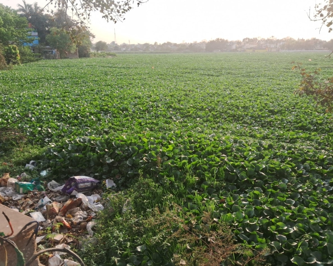 रायपुर – तालाब पूरी तरह ढंक चुका है।लोगो को निस्तारी के लिए दिक्कत का सामना करना पड़ रहा है।