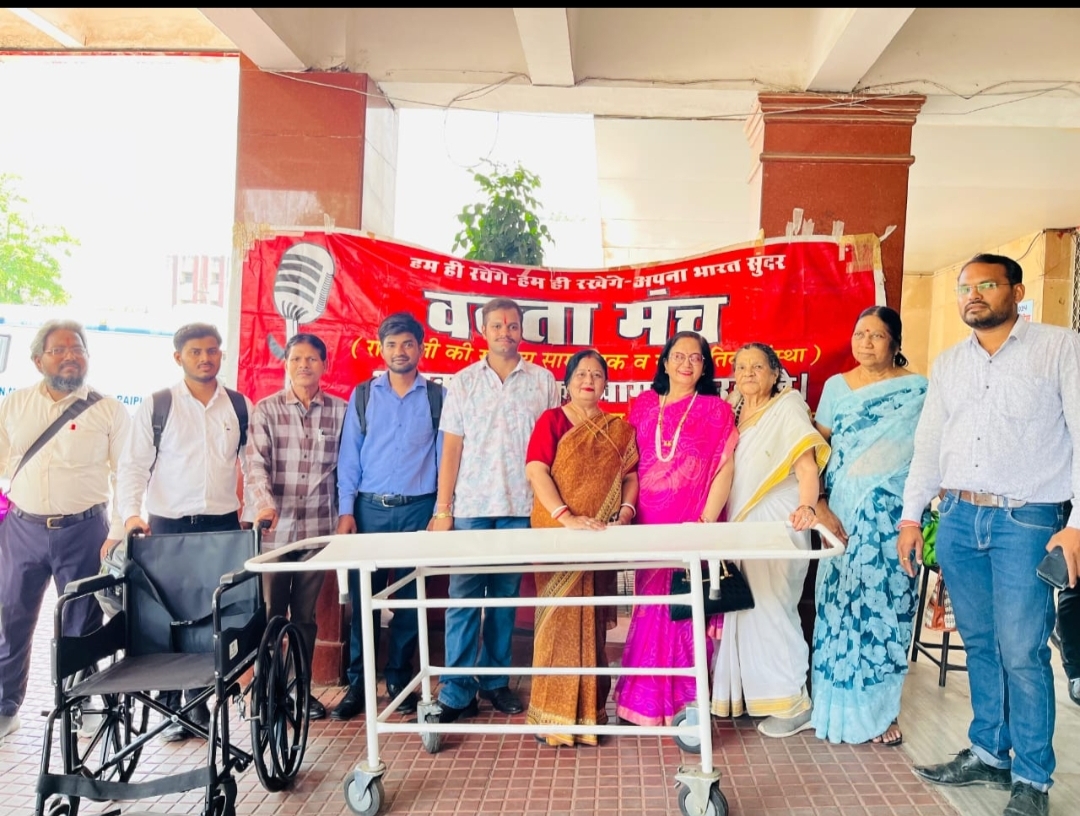 रायपुर l अग्रणी सामाजिक संस्था वक्ता मंच द्वारा आज डॉ भीमराव अंबेडकर स्मृति चिकित्सालय (मेकाहारा) रायपुर को एक नग स्ट्रेचर एवं एक नग व्हील चेयर प्रदान की गई l वरिष्ठ कवयित्री शुभा शुक्ला ‘निशा ‘द्वारा वक्ता मंच के माध्यम से प्रदत्त इस मेडिकल सामग्री को अस्पताल के अधीक्षक डॉ संतोष सोनकर को हस्तांतरित किया गया l इस अवसर पर डॉ सोनकर ने कहा कि प्रदेश का यह बड़ा चिकित्सालय है एवं जन सहयोग से इसे और बेहतर बनाया जा सकता है l इस अस्पताल के सेवाभावी चिकित्सकों व समूचे स्टाफ की उत्कृष्ट कार्य प्रणाली से दूर दूर से आ रहे मरीजों का तत्काल व उचित इलाज संभव हो पाता है l जन सहयोग से भी अस्पताल संचालन में बहुत सुविधा होती है l दानदाता एवं वरिष्ठ कवयित्री शुभा शुक्ला निशा ने इस अवसर पर कहा कि वक्ता मंच द्वारा जारी समाज सापेक्ष आयोजनों के क्रम