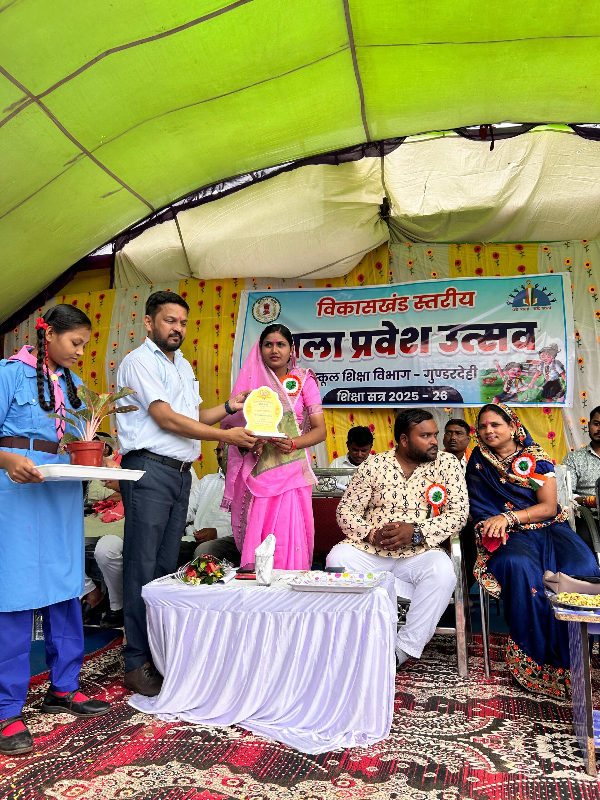 बालोद – गुंडरदेही विकासखंड अंतर्गत ग्राम भिलाई (चीचा) में विकासखंड स्तरीय शाला प्रवेश उत्सव का आयोजन किया गया। कार्यक्रम में मुख्य अतिथि के रूप में बालोद जिला पंचायत अध्यक्ष तारणी पुष्पेंद्र चंद्राकर, अध्यक्षता जनपद पंचायत अध्यक्ष पुरुषोत्तम चंद्राकर ने की। अन्य अतिथियों के रूप में जनपद उपाध्यक्ष नीतीश मोंटी यादव, जिला पंचायत सदस्य गुलशन चंद्राकर, मीना उमाशंकर साहू,सरपंच परस निषाद, पूर्व जनपद सदस्य ओमकार सिन्हाजीवन साहू, काशी साहू,धारा चौधरी जनपद सभापति, नेम चुम्मन साहू जनपद सदस्य, विकासखंड शिक्षा अधिकारी नवीन यादव, प्राचार्य के. लता वेणुगोपाल, कामता साहू सावित्री शर्मा, हेमशेखर साहू, राजेश साहू आदि उपस्थित रहे। सर्वप्रथम माँ सरस्वती की छायाचित्र पर माल्यार्पण एवं पूजा अर्चना कर कार्यक्रम का शुभारंभ किया गया।