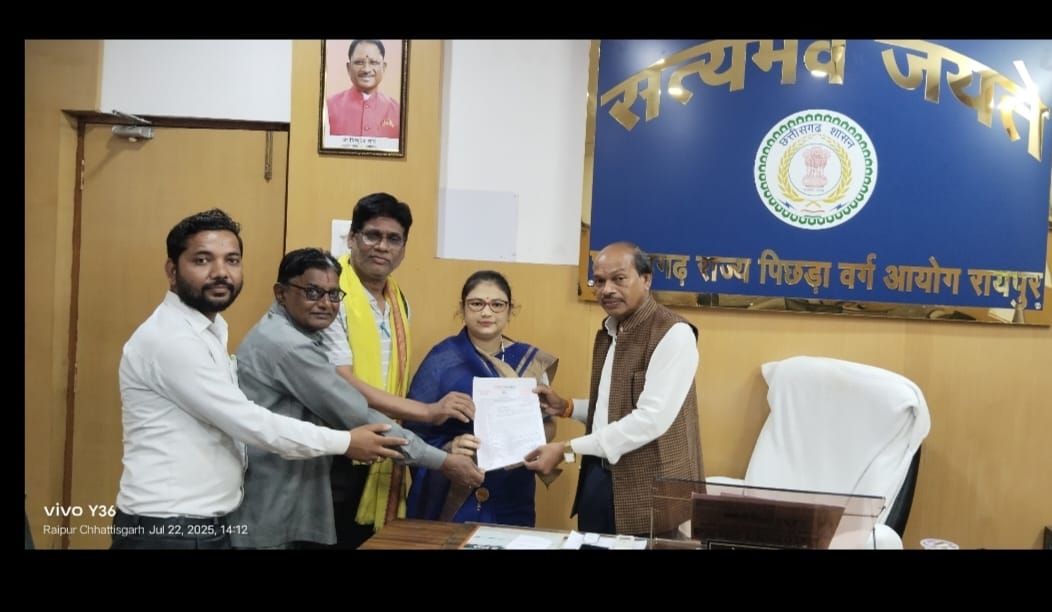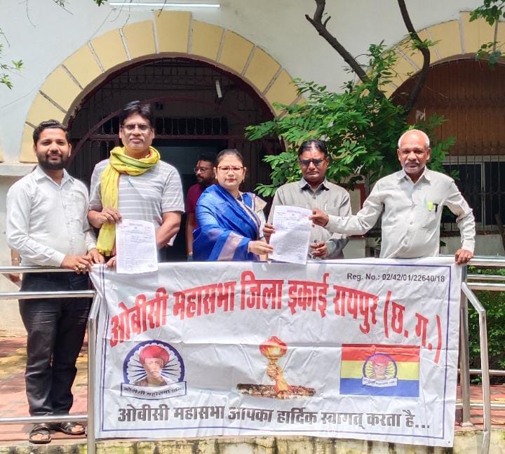 आरक्षण संसोधन विधेयक 2022 पर हस्ताक्षर किये जाने व 27% ओ बी सी आरक्षण के लिए अध्यादेश पारित कर विधेयक लागू किये जाने के साथ के साथ आवश्यक पहल किए जाने का अनुरोध कर ओ बी सी राधेश्याम प्रदेशाध्यक्ष ओ बी सी महासभा छत्तीसगढ़ के निर्देशानुसार महामहिम राज्यपाल एवं माननीय मुख्यमंत्री छत्तीसगढ़ शासन रायपुर तथा अध्यक्ष पिछड़ा वर्ग आयोग छ. ग. शासन के नाम द्वारा श्रीमान डॉ गौरव सिंह कलेक्टर राजधानी रायपुर एवं श्री नेहरू निषाद, अध्यक्ष, राज्य पिछड़ा वर्ग आयोग, रायपुर छत्तीसगढ़ को ज्ञापन सौंपा गया।
