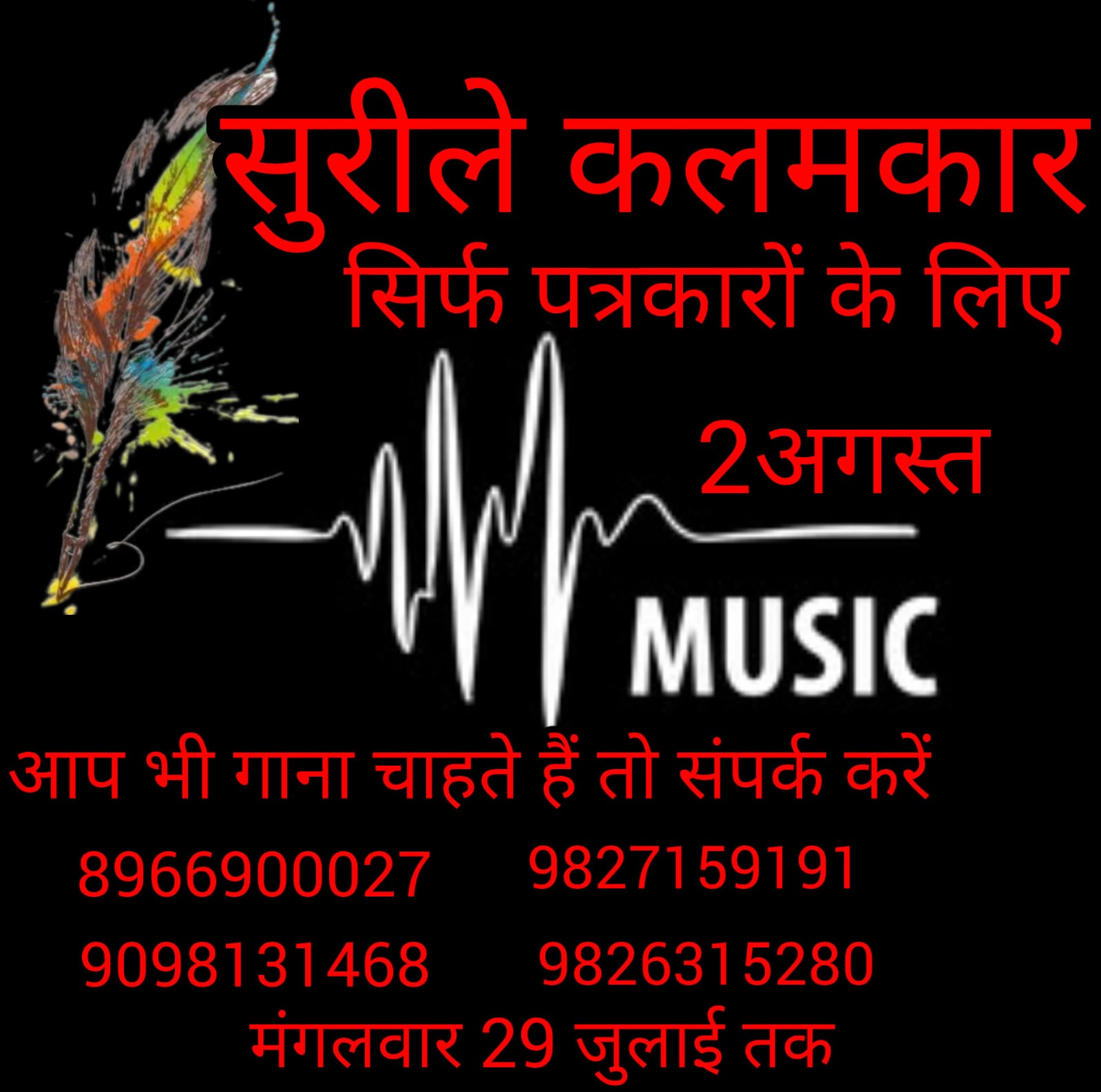 सुरीले कलमकार 2 अगस्त को, गायकी का रंग बिखेरेंगे पत्रकार…