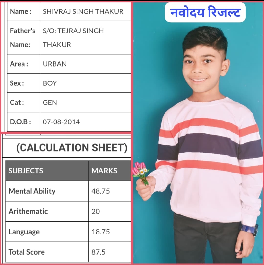 देवभोग:- देवभोग के सरस्वती शिशु मंदिर में पढ़ने वाला छात्र शिवराज ठाकुर अब उड़ने की राह पर निकल चुका है कक्षा पांचवीं का छात्र नवोदय प्रवेश परीक्षा में 87.5 अंक लाकर नवोदय विद्यालय पाण्डुका जिला गरियाबंद में चयन हुआ है ।इस बार के प्रवेश परीक्षा में देवभोग ब्लॉक के छात्र छात्राओं ने अपना परचम जिले में लहराया है।क्योंकि इस बार पूरे देवभोग ब्लॉक से अधिकतम छात्र एवं छात्राओं का नवोदय विद्यालय में चयन हुआ है, देवभोग ब्लॉक के लिए यह गर्व का विषय है ।आपको बताना लाजिमी होगा, छात्र के पिता तेजराज ठाकुर पेशे से एक शिक्षक है एवं बच्चों की इस उपलब्धि के लिए उन्होंने सरस्वती शिशु मंदिर के सभी शिक्षकों का आभार व्यक्त किया है,