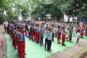 रायपुर – हिन्द इंग्लिश मीडियम स्कूल, आर.डी.ए.प्लाट, संजय नगर में आज ग्रीन डे मनाया गया। इस अवसर पर संजय नगर गार्डन में अतिथियों एवं छात्र-छात्राओं ने वृक्षारोपण किया। वृक्षारोपण कार्यक्रम एवं राखी प्रतियोगिता में सम्मिलित छात्र-छात्राओं को प्रमाण-पत्र भी वितरित किया गया। इस अवसर पर मुख्य अतिथि के रूप में उपस्थित रायपुर दक्षिण विधानसभा के विधायक माननीय सुनील सोनी जी ने शाला के विद्यार्थियों को पेड़ो के महत्व और उसकी आवश्यकता के बारे में विस्तारपूर्वक समझाया।