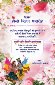 छत्तीसगढ़ योग आयोग द्वारा रायपुर में द्वितीय होली मिलन समारोह का आयोजन किया जा रहा है, जिसे “फूलों की होली” कहा जा रहा है। इस कार्यक्रम में प्रकृति के वरदान और फूलों की सुगंध के साथ होली का आनंद लिया जाएगा।
